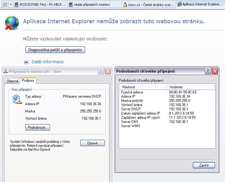 Re: nejde připojení k routeru