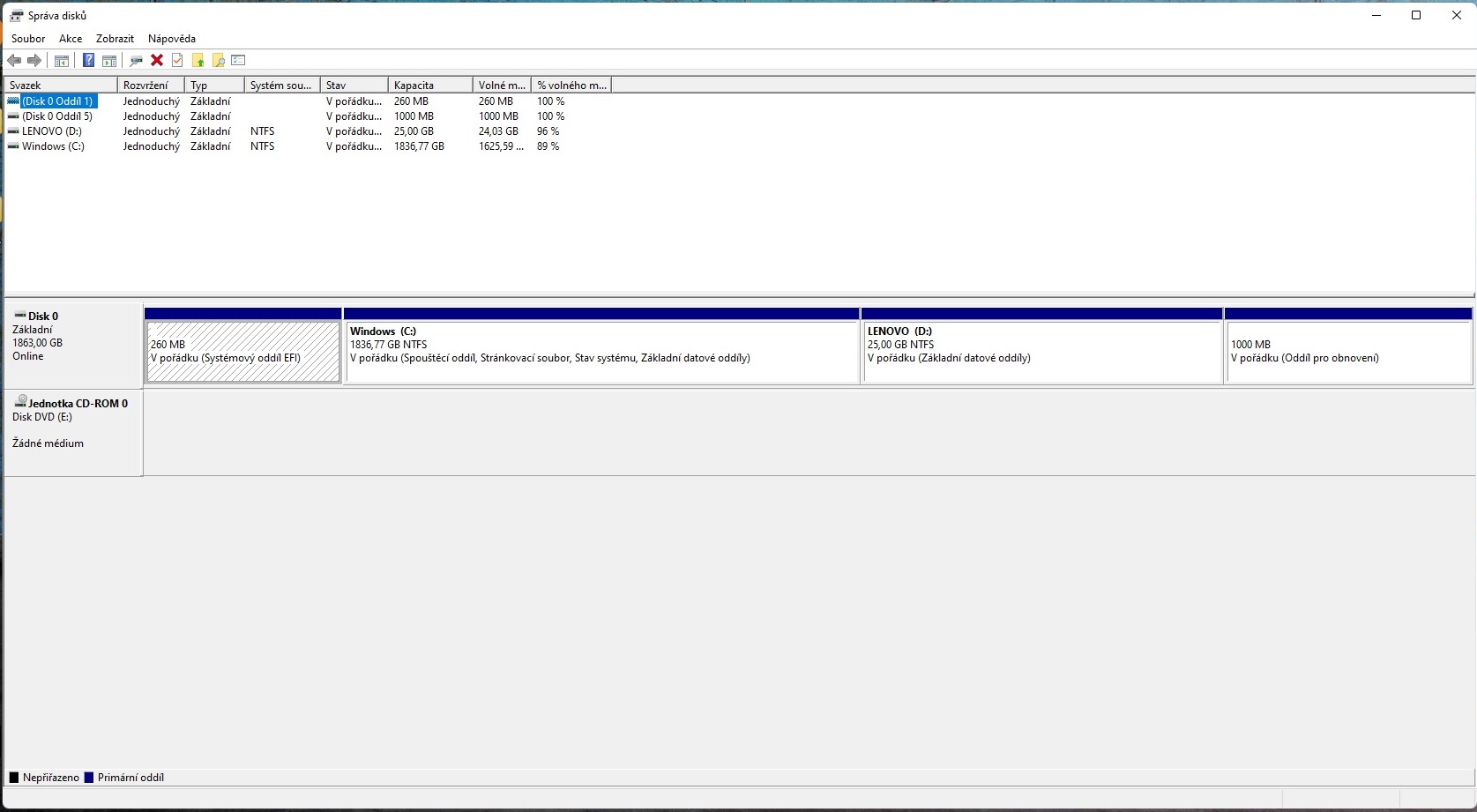 pokud je ještě k něčemu dobrý ten screen ze spravce disků, tak tady je