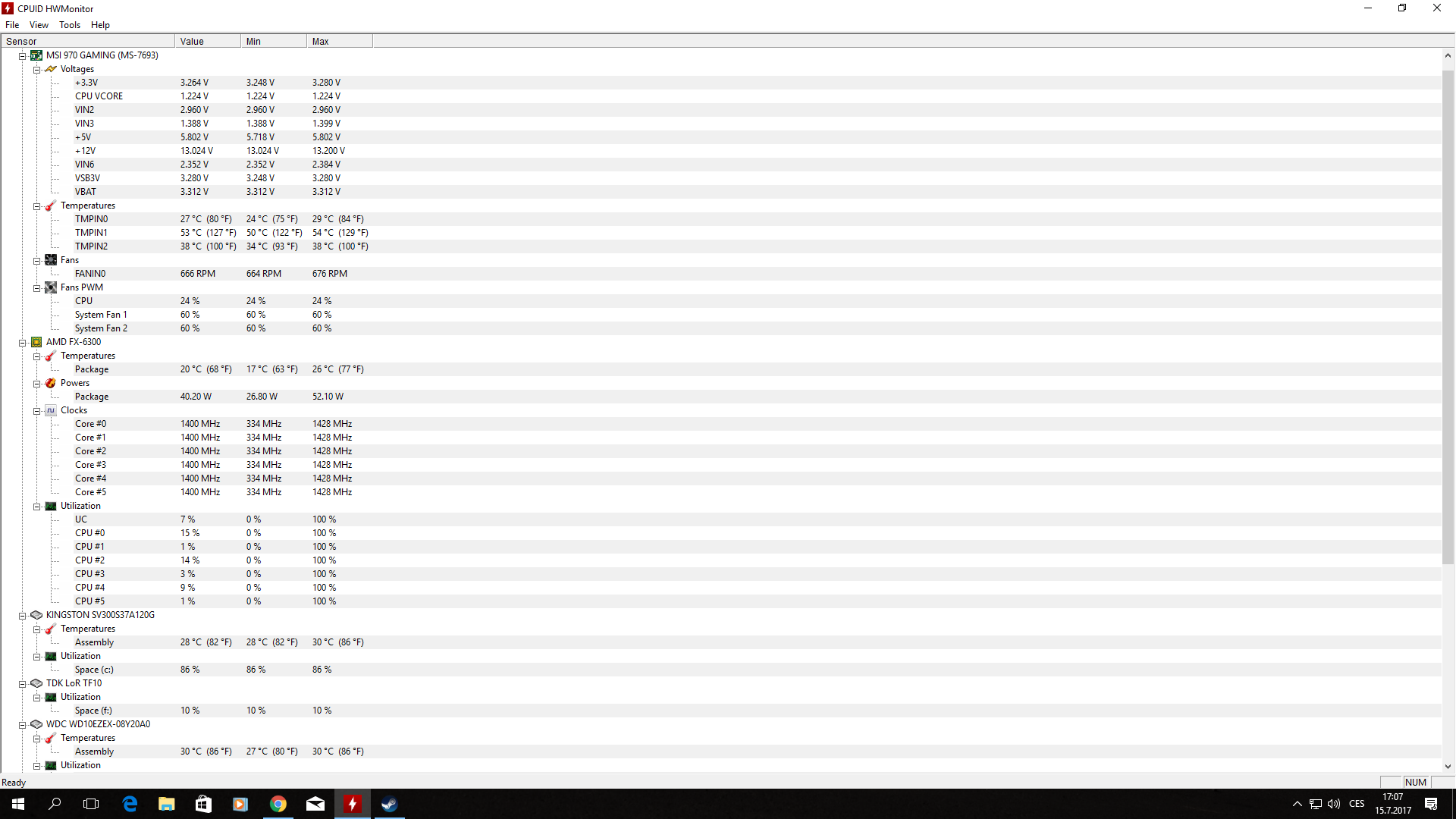 Zdravím dá se nějak zjistit kde je problém ? Jestli na desce, nebo cpu, nebo zdroj, nebo jen nějaká ptákovina ? .. Cpu běží na frekvenci 1.4ghz což je fakt bída.. Prosím o pomoc.. Vše šlapalo rok bez problému.. AMD Vishera FX-6300 GIGABYTE GTX750 Ti Ultra Durable 2 2GB Kingston HyperX Fury Black 8GB...