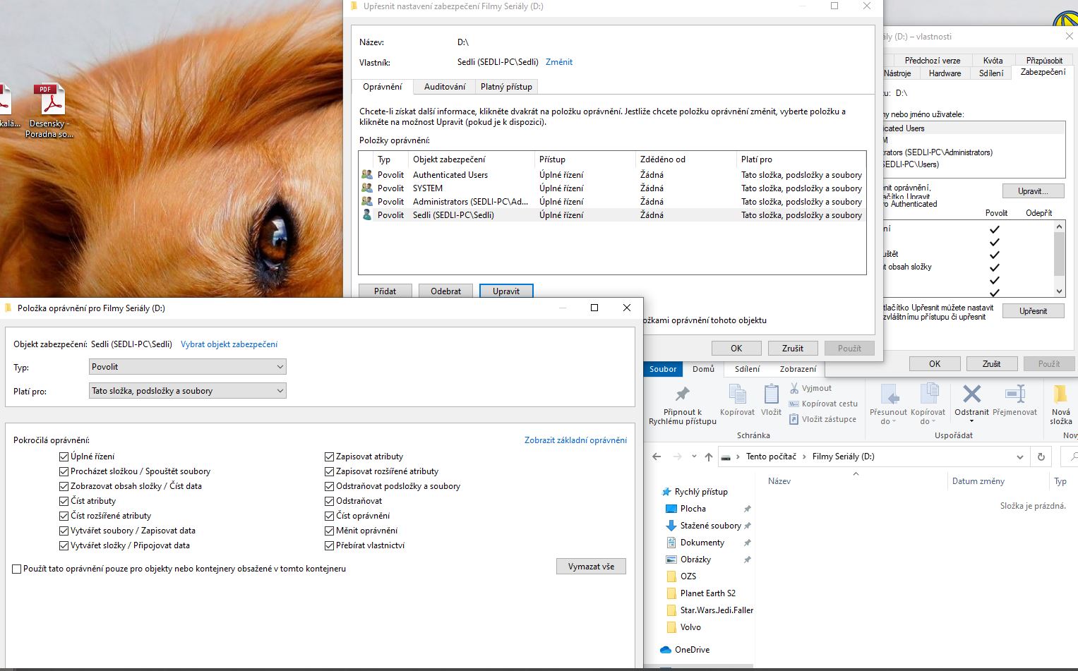 Tak nevím jestli jsem šel správně podle toho co jsi psal(přepisoval jsem oprávnění disku na složkách poprvé). Každopádně beze změny viz obrázek.