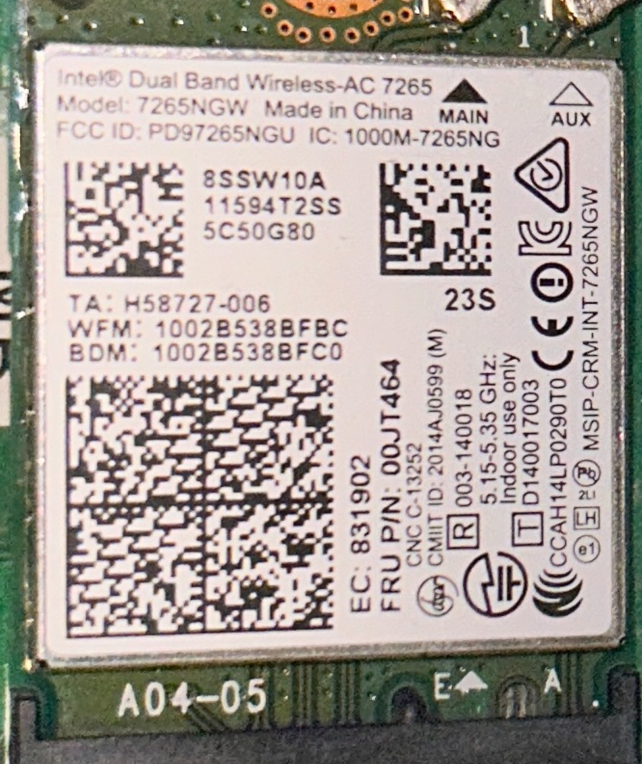 Je to Intel Dual Band Wireless AC 7265NGW
