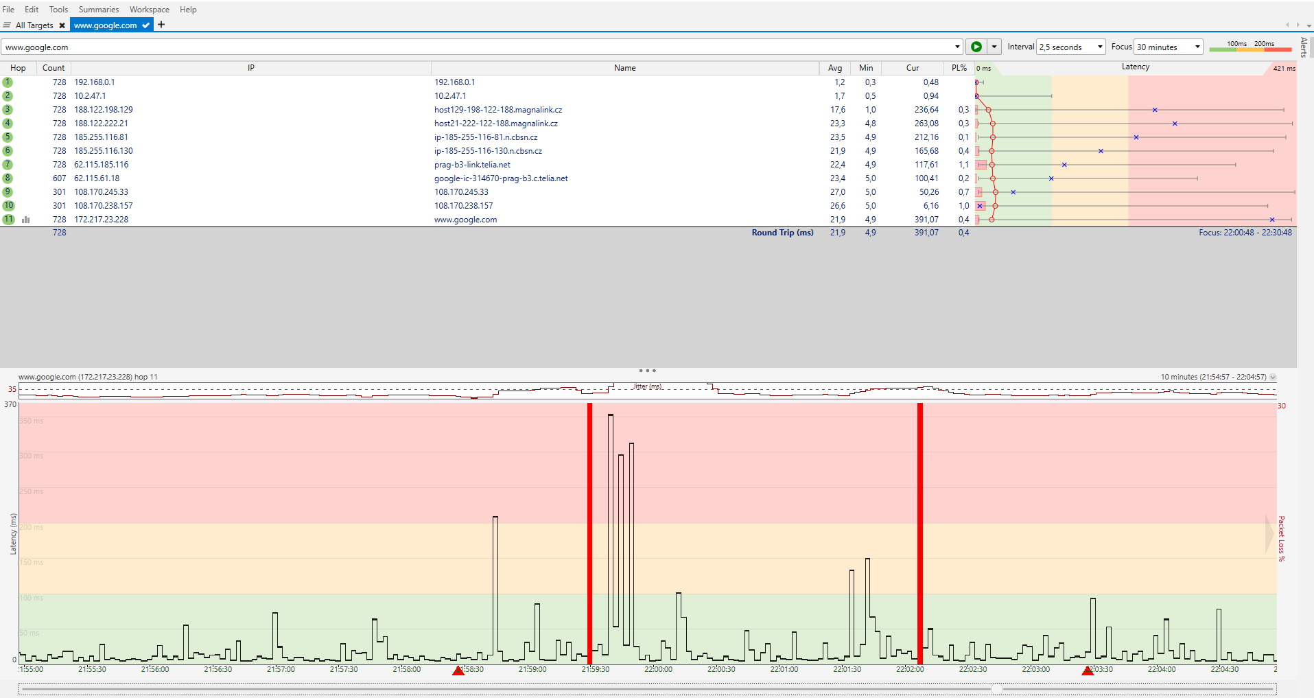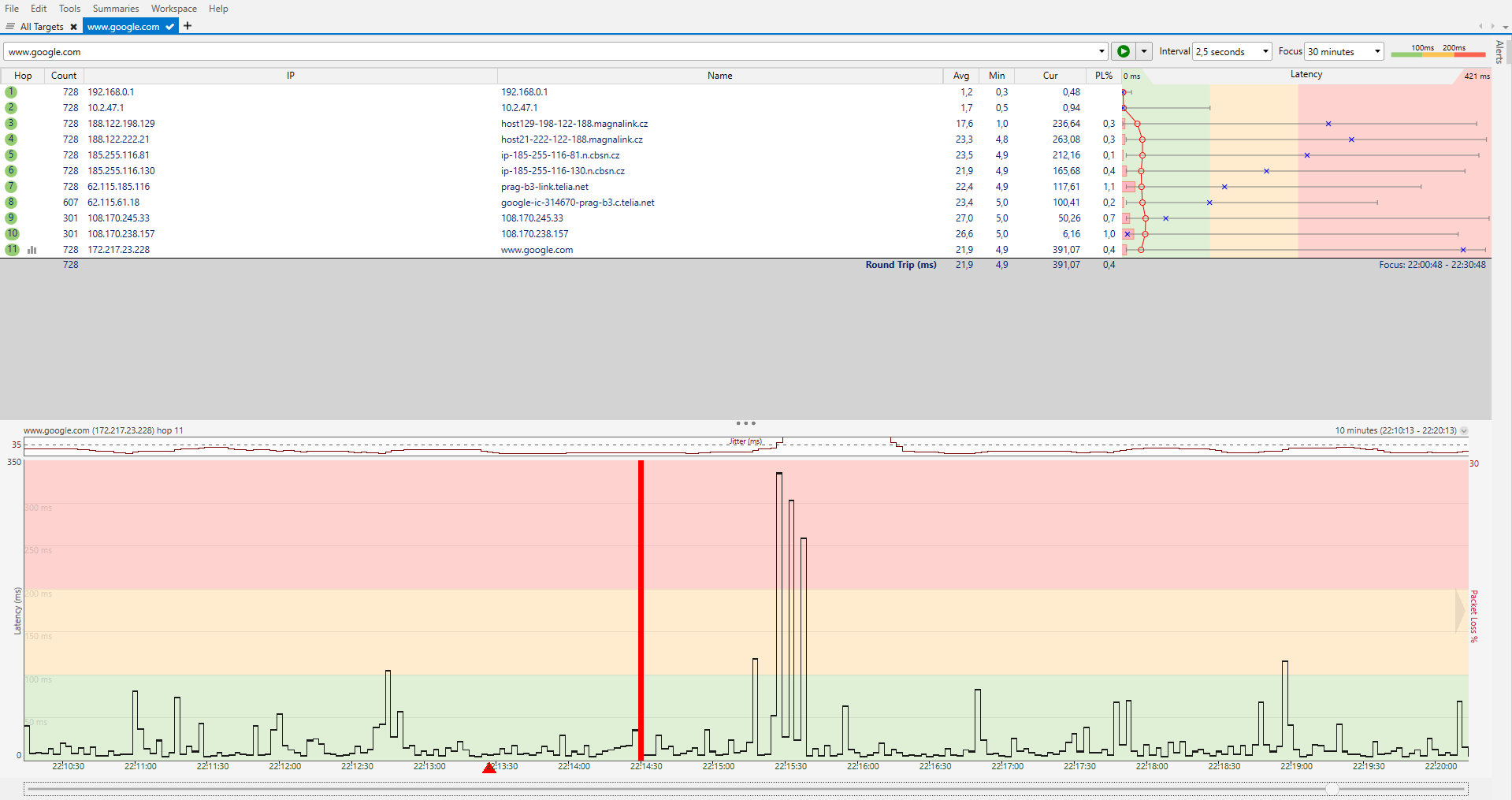 Ano, psal jsem že se mi ping zvýší jednou za cca 15min, asi na 10sek. Nechal jsem to běžet a když se mi zvýšil ping, vyscreenoval jsem to. Co ještě by tam tedy mělo být vidět?