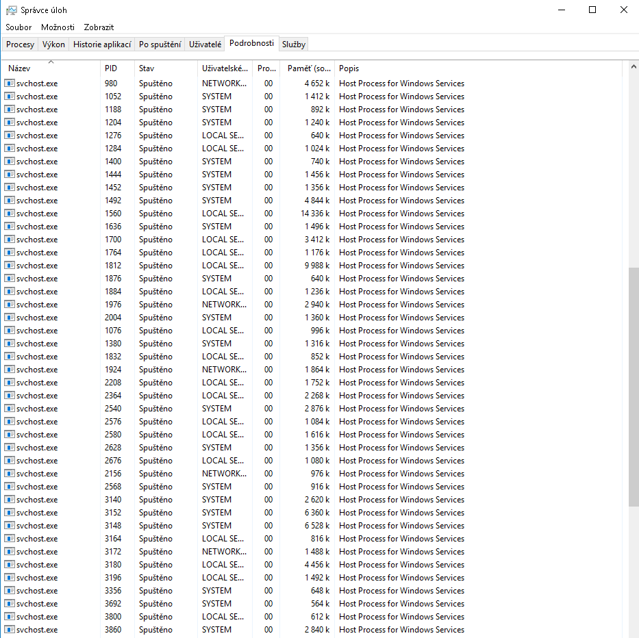Zdravím je to takhle normální mít asi 80 procesů windows ? když přepnu ve správci úloh na podrobnosti tak je tam strašně moc svchost.exe viz. obrázky v příloze