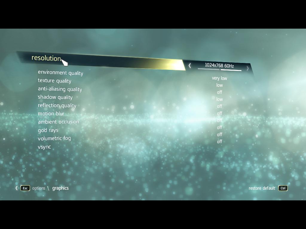 Po nastavení rozlišení 1680x1050 se hra ještě dala hrát i na medium,ale musel se vypnout Antialiasing.