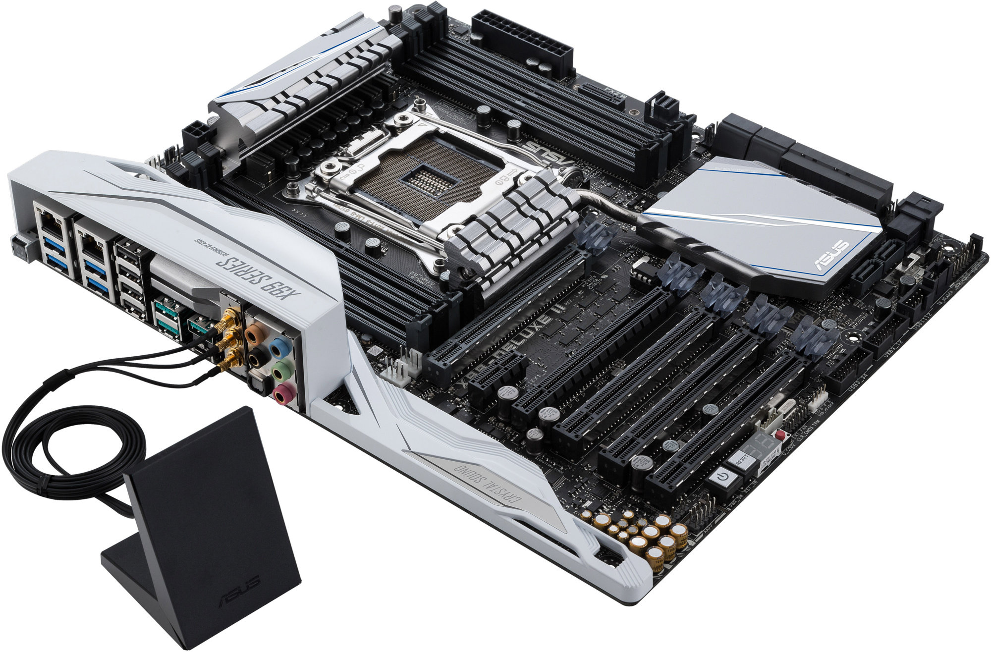 ASUS X99 - DELUXE II - Intel X99 je skvělá základní deska pro procesoru se socketem 2011v3. Má vše, co i pokročilý uživatel potřebuje. Deska je postavena na čipsetu Intel X99, je vybavena 5x PCI-E 3.0 x16 a 1x PCI-E 2.0 1x, dále 8x SATA 6Gb/s, M.2 slotem, na zadní straně nalezneme 4x USB 3.1, 4x USB 3.0 a 4x USB 2.0.