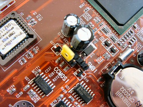 K resetování BIOSu a tudíž i k návratu původních konfiguračních hodnot, můžete také použít propojku na základní desce, jež bývá nejčastěji označena popiskem Reset CMOS, CCMOS1, CLRTC1, JP1 apod. Tuto je třeba na několik okamžiků přepnout z polohy 1-2 (Normal) na 2-3 (Reset) a po jejich uplynutí vrátit jumper na jeho původní místo.