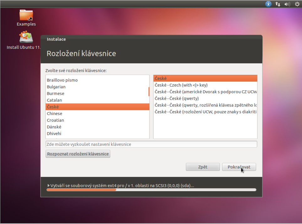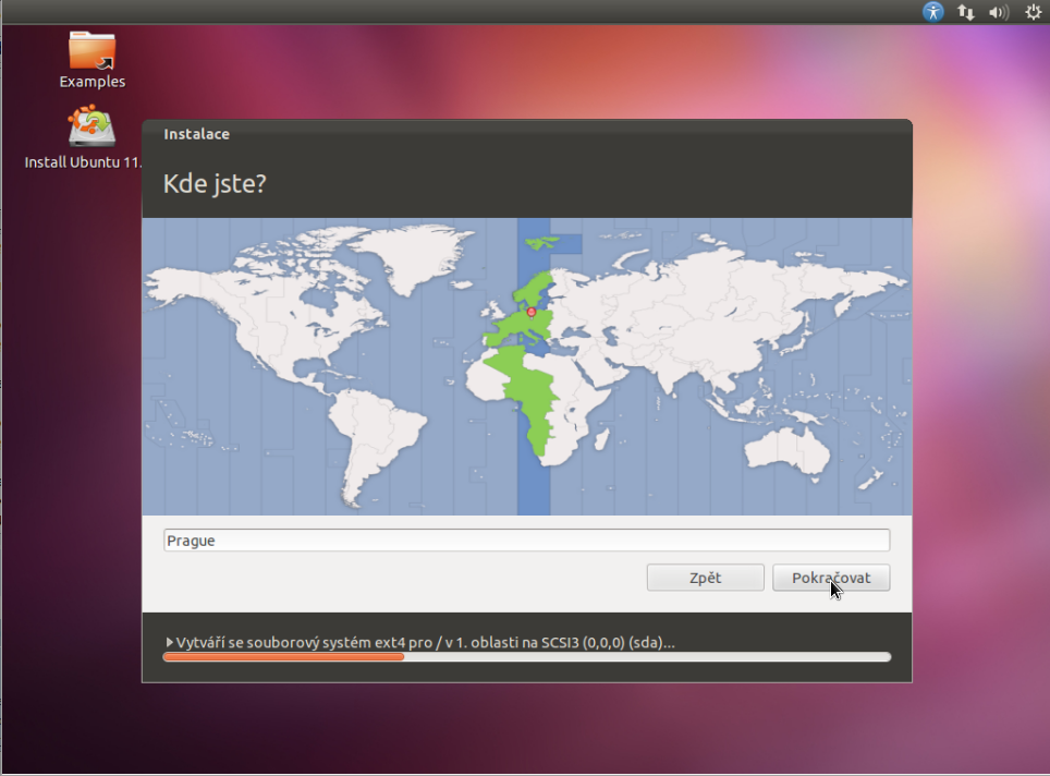 Zde už probíhá instalace systému, jen se provede jeho nastavení: času