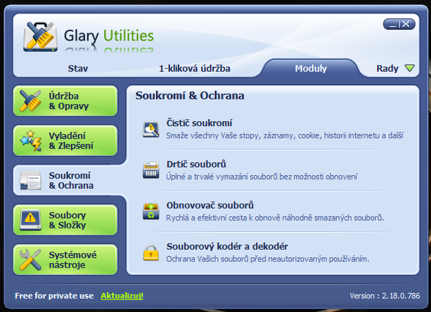 Glary Utilities je soubor několika jednoduchých a výkonných systémových nástrojů pro opravu, zrychlení, údržbu a ochranu vašeho PC.