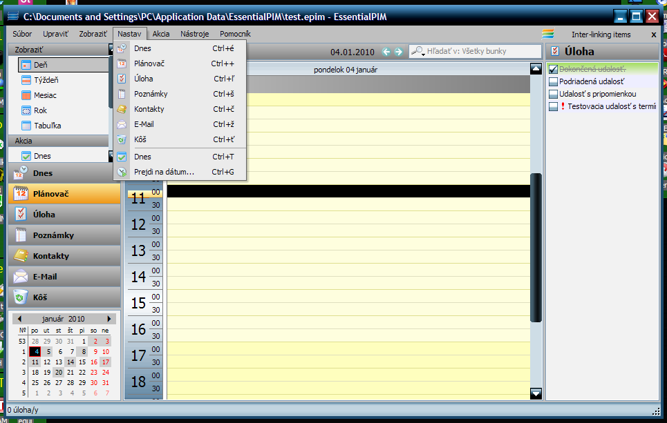 Výkonný nástroj sloužící jako osobní plánovač, organizér schůzek a úkolů atd. Samozřejmostí je také přehledná správa kontaktů. Všechny záznamy lze přehledně třídit a také barevně odlišit. Program rovněž umožňuje obousměrnou synchronizaci záznamů a kontaktů s MS Outlook. Export záznamů je možný do formátů HTML, RTF, CSV nebo TXT.