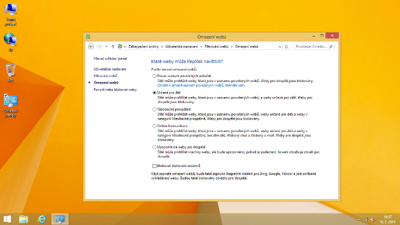 Windows 8.1 ve srovnání s Windows 7 nabízejí mnohem více nástrojů rodičovské kontroly. Novinkou jsou tzv. dětské uživatelské účty, které mají automaticky aktivní prvky rodičovské kontroly a výše zmíněný filtr SmartScreen bránící v otevření nedůvěryhodných nebo neznámých souborů stažených z internetu. V rámci rodičovské kontroly lze ale také zcela zakázat stahování souborů.