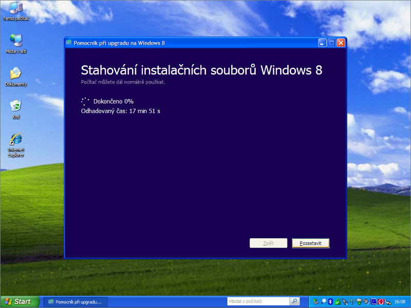 Stahování nějakou dobu potrvá, protože soubory nutné k provedení upgradu mají objem zhruba 2 GB. Během stahování můžete s počítačem normálně pracovat. V tuto chvíli ještě instalační proces nezačal, takže nehrozí, že by se vám uprostřed rozdělané práce systém restartoval nebo něco podobného.
