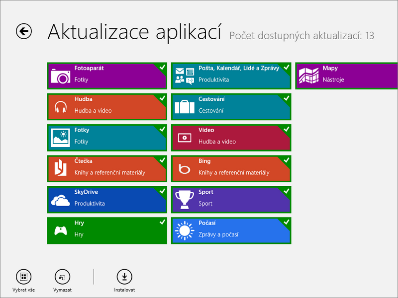 Když už systém máte nainstalovaný, tak lze doporučit otevřít si Windows Store a nejprve si nainstalovat přes odkaz vpravo nahoře dostupné aktualizace předinstalovaných aplikací. Přidávají některé nové funkce jako je podpora protokolu IMAP v e-mailovém klientovi Mail (Pošta), přístup k fotkám uloženým v jiných počítačů z aplikace Fotky (Photos) a tak dále.