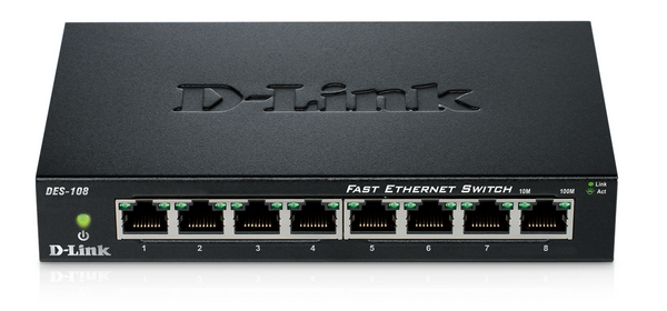 V našem případě jej ale využijeme jako „hub (rozbočovač)“. Switch má obvykle osm zásuvek, ale existují i levné modely se čtyřmi nebo pak dražší modely s větším počtem. Každopádně je třeba do libovolné zásuvky switche zastrčit UTP kabel připojený do některé ze zásuvek routeru. Zbylé zásuvky switche lze pak využít pro připojení dalších zařízení k síti.