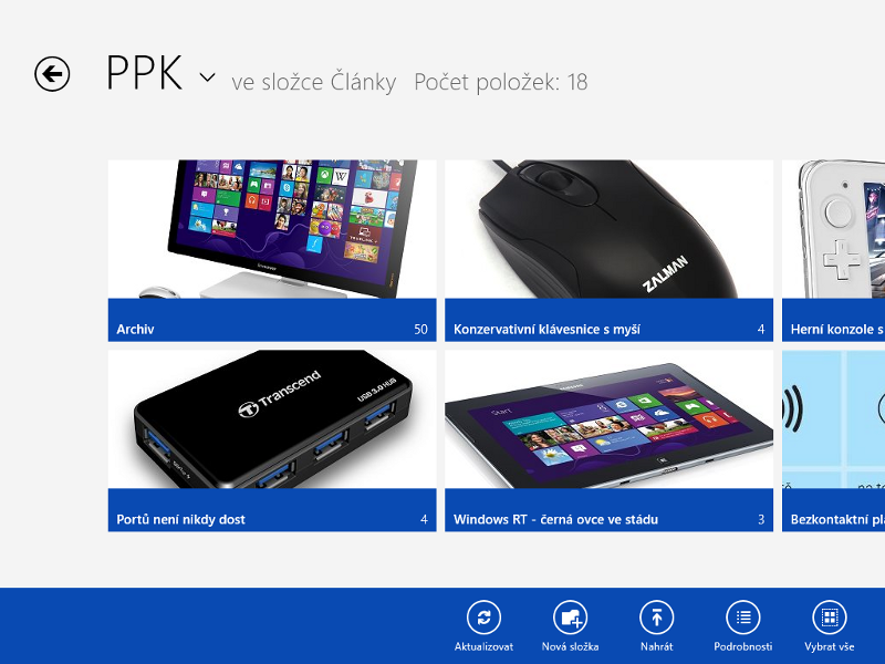 Na tabletech a konvertibilních zařízeních s Windows 8 a Windows RT je již k dispozici předinstalovaná přístupová aplikace optimalizovaná pro dotykové ovládání, což opět není žádné překvapení. Spíše zklamání, protože už ve Windows 8 se čekala mnohem větší provázanost se službou SkyDrive, takže pouhá přístupová aplikace mnohé uživatele nemile překvapila.