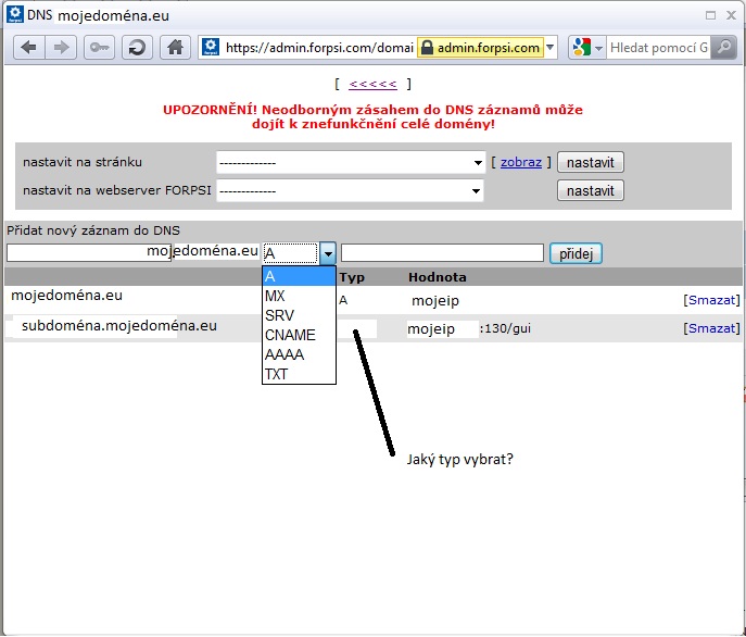 Mám zakoupenou doménu a nastavil jsem si přesměrování této domény na určitou IP.