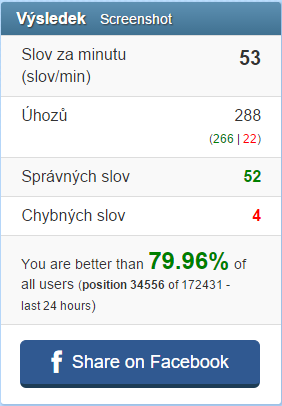 Tak pro mě je úspěch počet překlepů, protože já dokážu udělat překlep v každym druhym slově když se nedaří