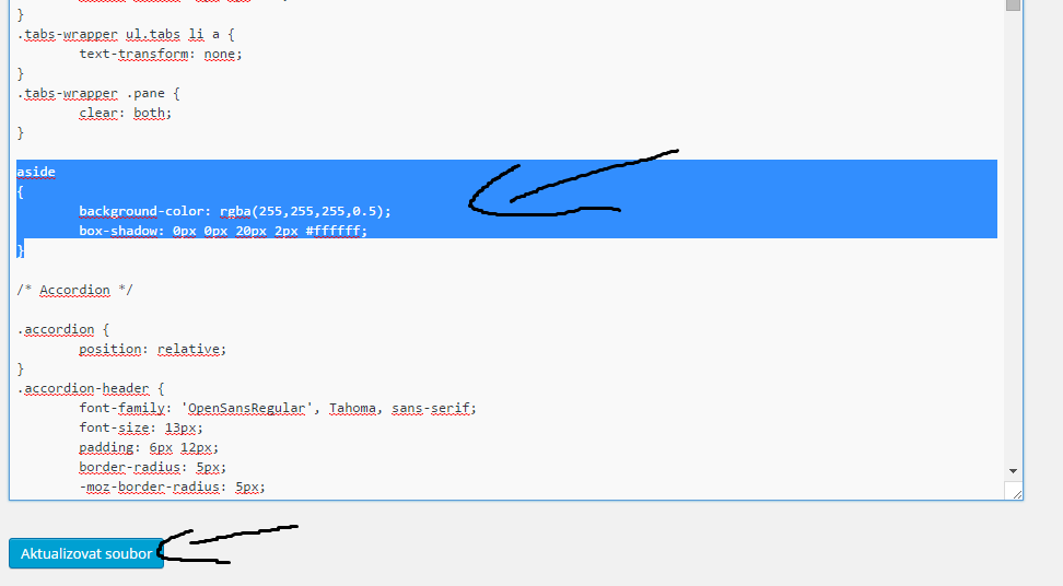 Styl celého pravého sloupce s widgety je ve style.css tady:background-color definuje bílou barvu pozadí s 50% průhledností (0.5)Kód: Vybrat vše