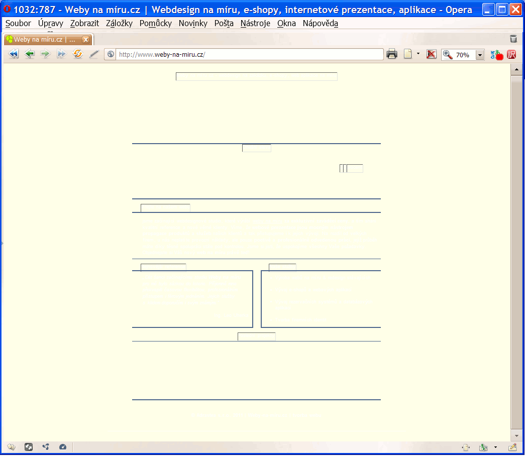- Text nahrazený obrázky je snesitelný v horším případě u nadpisů, ale tohle je hodně diletantské řešení. Pokud totiž vypnu obrázky, stránka vypadá následovně: