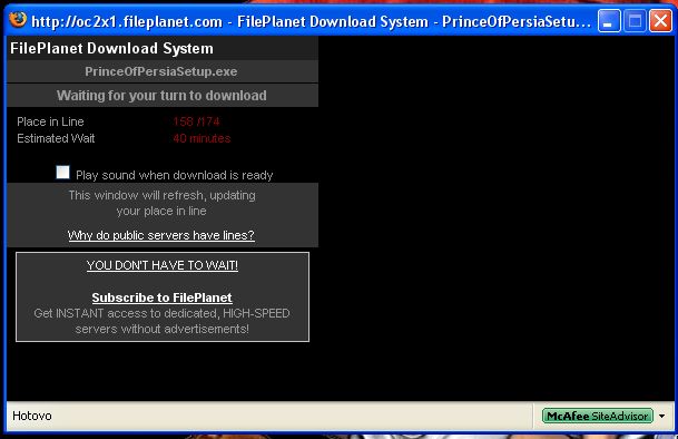 Nemáte radu pro Neználka?Jak to stáhnout ?Zaregistroval jsem se a potom jsem se doklikal na Fileplanet Download system a co dál.Je tam PrinceOfPersiaSetup,ale co s tím,pak je tam nějaký čas čekání ,či co.Nikdy jsem to nedělal a Angličtina je mi cizí :oops: Co mám dělat? :oops: Posílám obr.