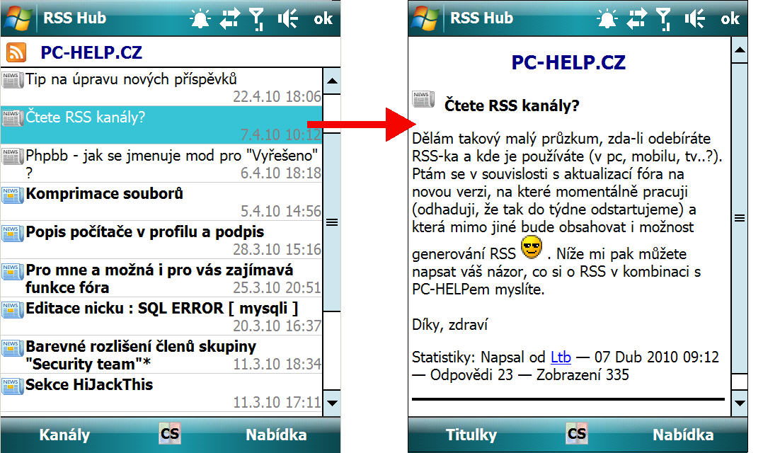 Díky této nové funkci si bude moci každý uživatel snadno a rychle zobrazit novinky z našeho fóra v libovolném zařízení a na libovolném místě. Není třeba spouštět prohlížeč a otevírat PC-HELP stránku jen proto, abyste se podívali, jaká nová témata do fóra přibyla. Zobrazený obsah je téměř čistým textem, datový přenos nezatěžuje žádná reklama či jiná grafika, díky tomu je ATOM ideální pro mobilní zařízení.