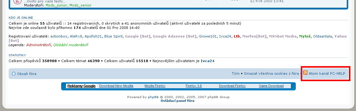 Zdravím všechny uživatele fóra, rád bych vám na tomto místě podrobně představil novinku, kterou jsme získali přechodem na verzi phpbb 3.0.7. Jedná se o zpřístupnění informačního kanálu PC-HELP (prostřednictvím ATOM standardu).