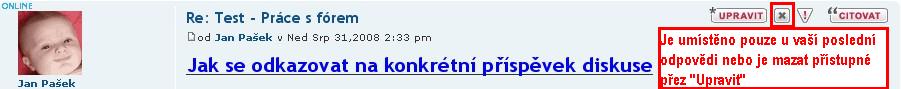 Je zobrazeno pouze u poslední odpovědi. Funkce smazat je také přístupna pomocí označení v rámci funkce "Upravit".