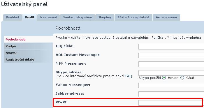 Nastavení Vaší WWW stránky - pro zvětšení klikni