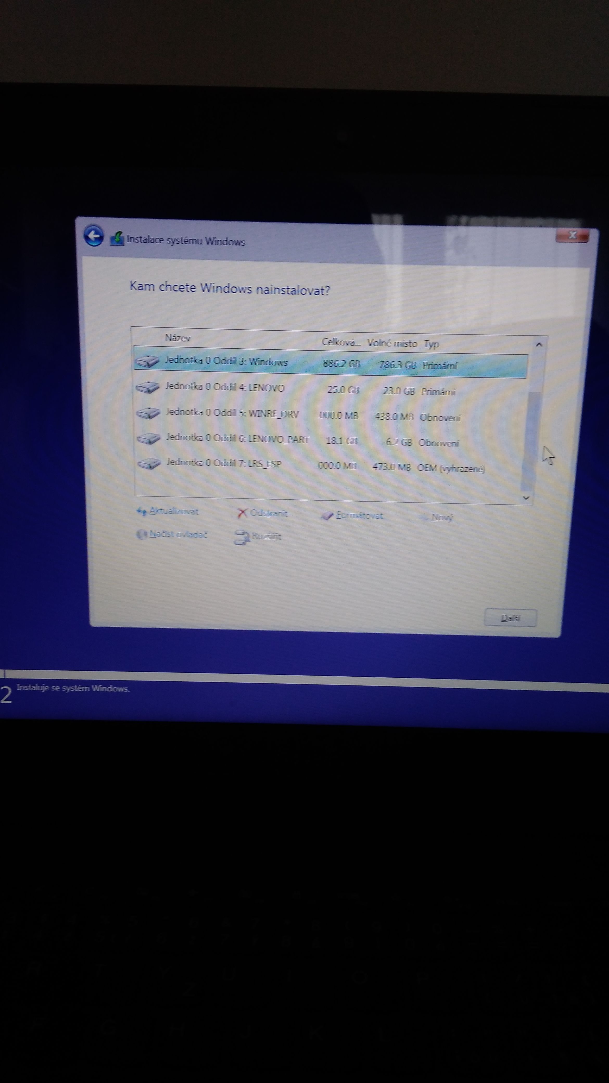 Posunul jsem se k reinstalaci windows, avšak nevím jak mám postupovat. Zeptali se mne to na typ instalace, dal jsem "jenom nainstalovat Windows". Pak se mi zde objeví několik oddílů, nevím co s nima, jestli všechny formátovat. Co musím udělat aby vznikla ta čistá instalace?