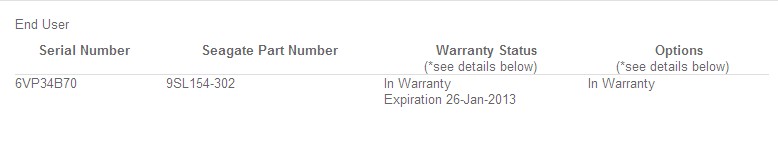 Na stánkách Seagate - Warranty Validation jsem zjistil, že se na ně ještě vztahuje záruka, viz. obr. To je ale vše, co se svojí znalostí angličtiny dokážu rozluštit, reklamačním podmínkám už nerozumím.