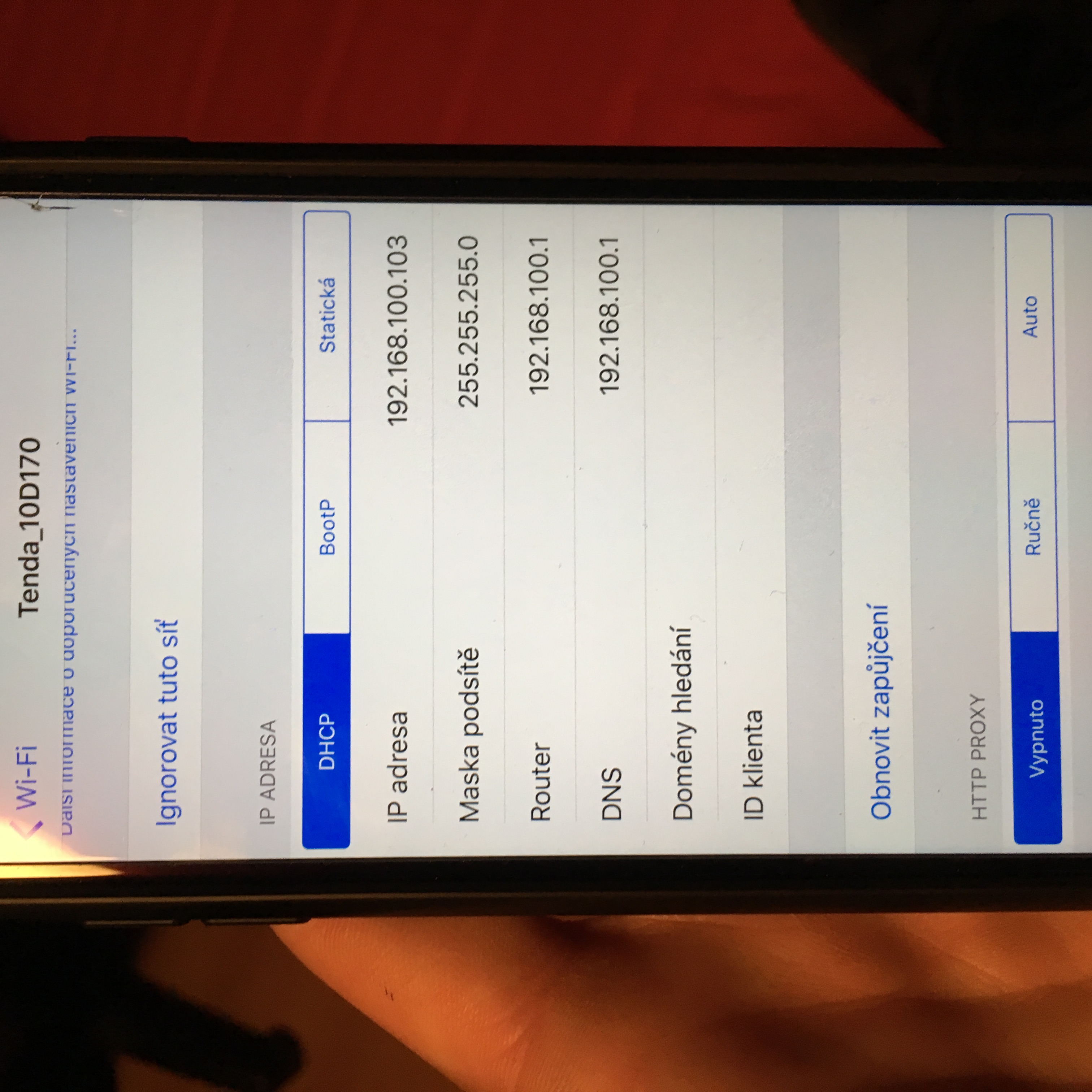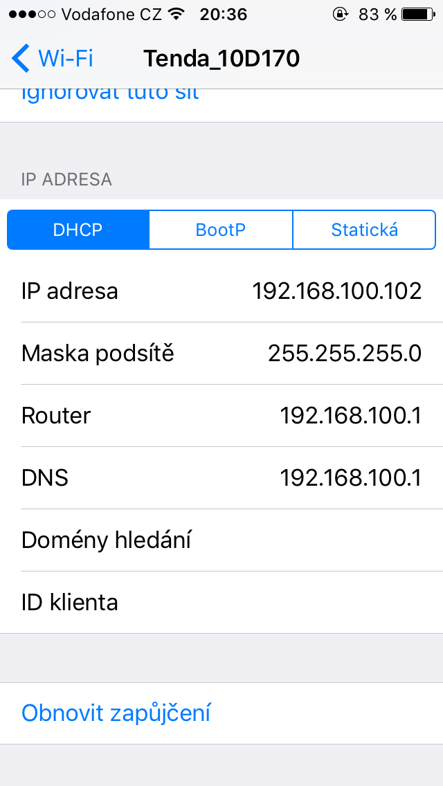 Jakou IP adresu a branu ma jine zarizeni ktere na te wifi funguje.
