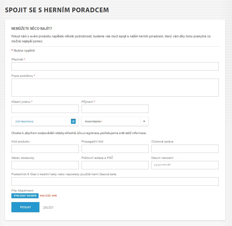 • Klikneš na možnost SPOJIT SE S HERNÍM PORADCEM - potřebuješ účet!