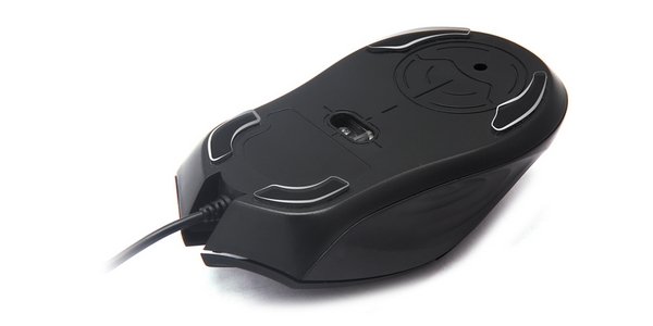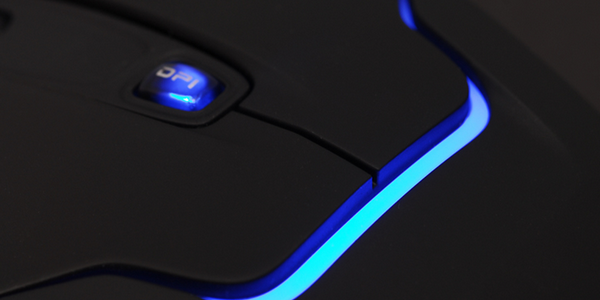 Pro nastavení rozlišení optického senzoru je na těle myši speciální modře podsvícené tlačítko, s jehož pomocí lze přepínat mezi 2000 DPI, 1200 DPI nebo 800 DPI. Tlačítko pro nastavení rozlišení je mezi klasickým levým a pravým tlačítkem, kde dělá společnost kolečku, které zároveň funguje jako běžné prostřední tlačítko myši. To je tedy výčet všech čtyř tlačítek, které tato myš nabízí, což není mnoho.