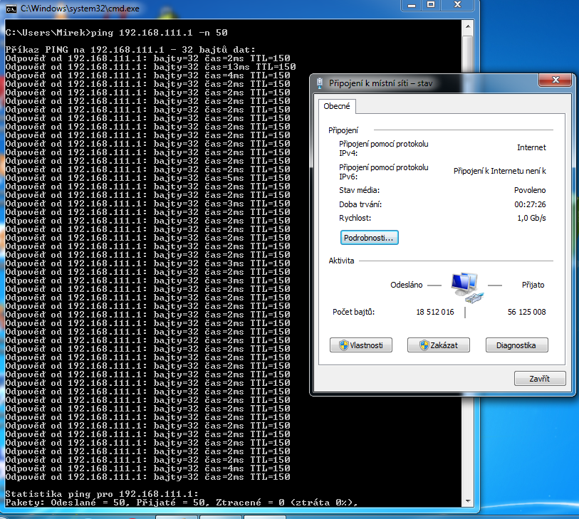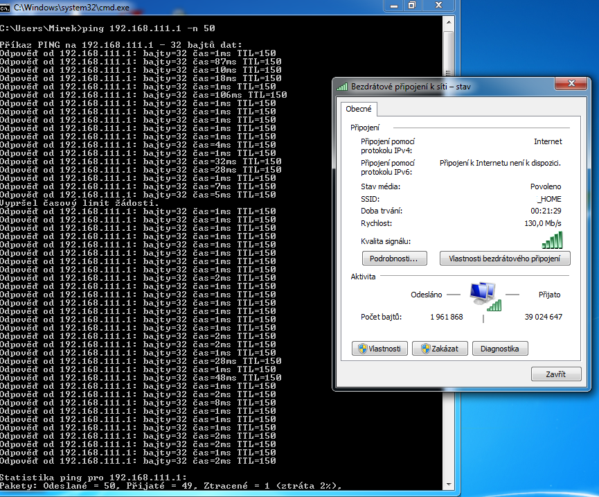 Byl jsem dotázán, jak je to s powerliny ohledně spolehlivosti pingů. Zde je tedy výsledek testování: Kvůli vypovídající hodnotě jsem nechal pingat 50x. Výsledek je myslím naprosto jasný. Zatímco LAN je pod 1ms v 98% případů a v jednom 2ms, u PowerLine je ve většině případů ping 2ms, pouze v jediném případě přes 10ms, u WiFi jeden paket neprošel vůbec, jeden je nad 100ms, v osmi případech nad 10ms.