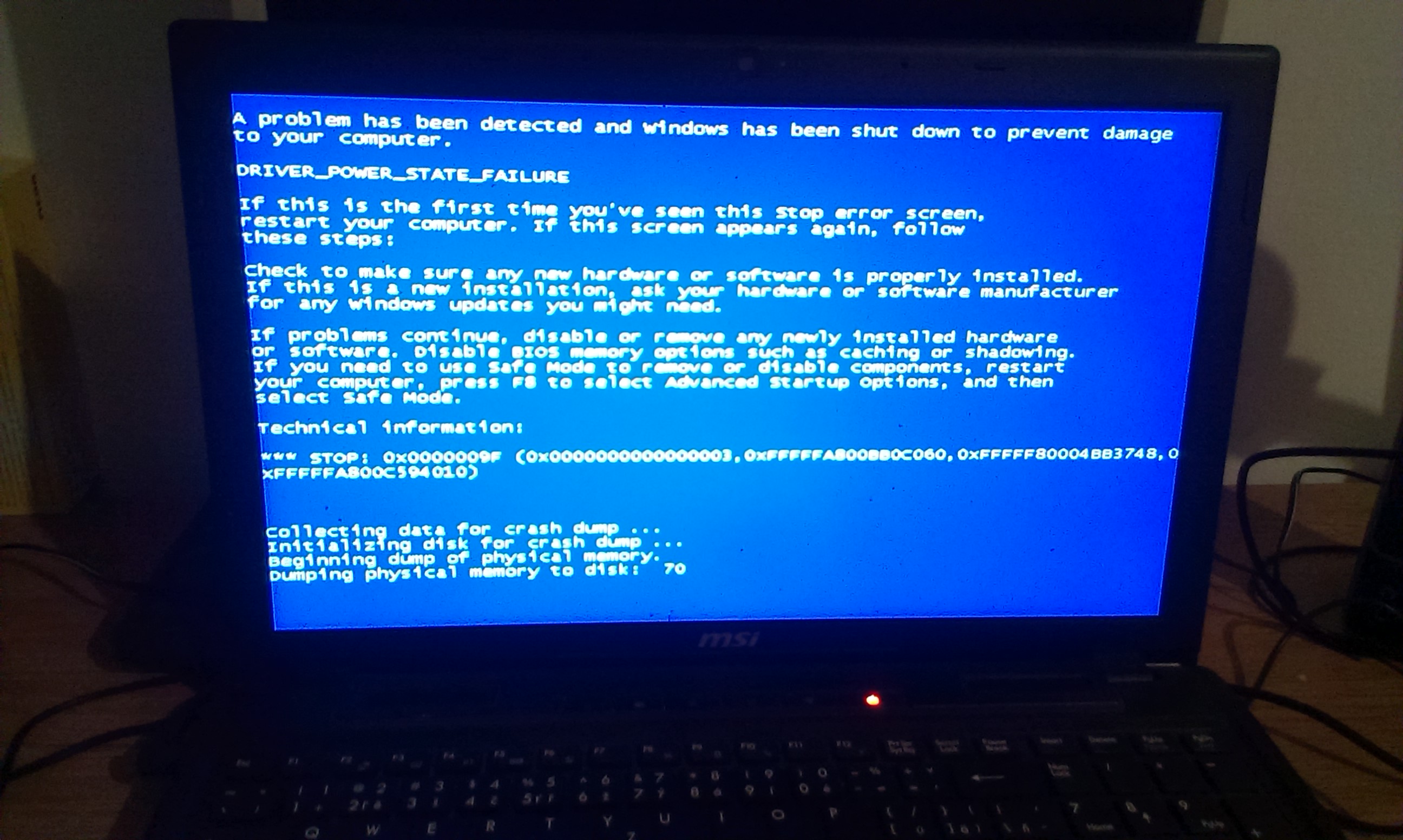 - po asi 5 minutách lehne do modra Driver Power State Failure