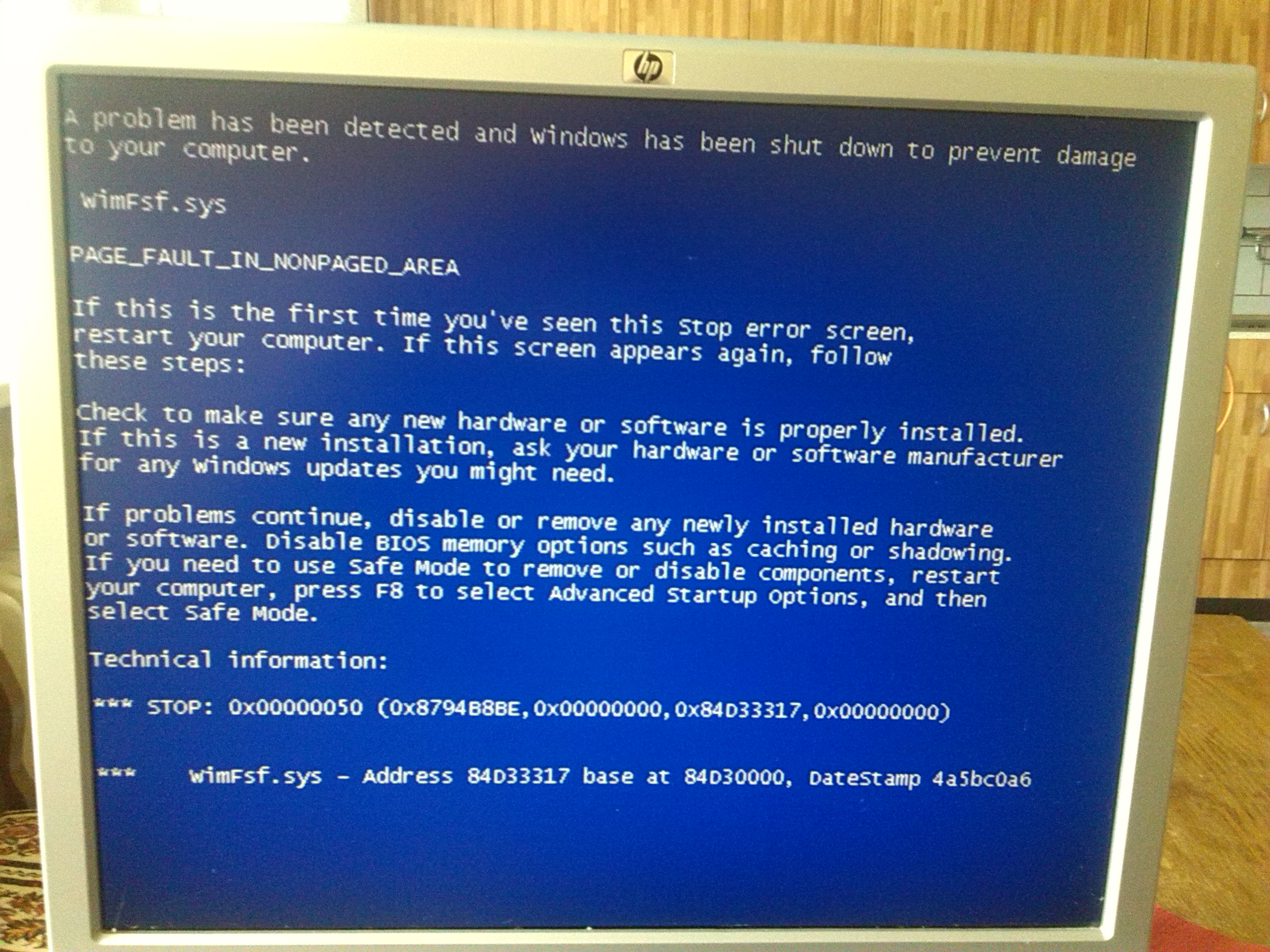 No tak vypadá to na chybu filtru wimfsf.sys (pro Windows Imaging Format). Co vím, tak ho Windows XP defaultně neobsahují,