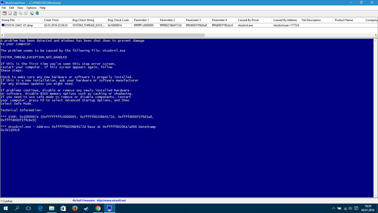 Přikládám snímek BSOD z BlueScreenViewer