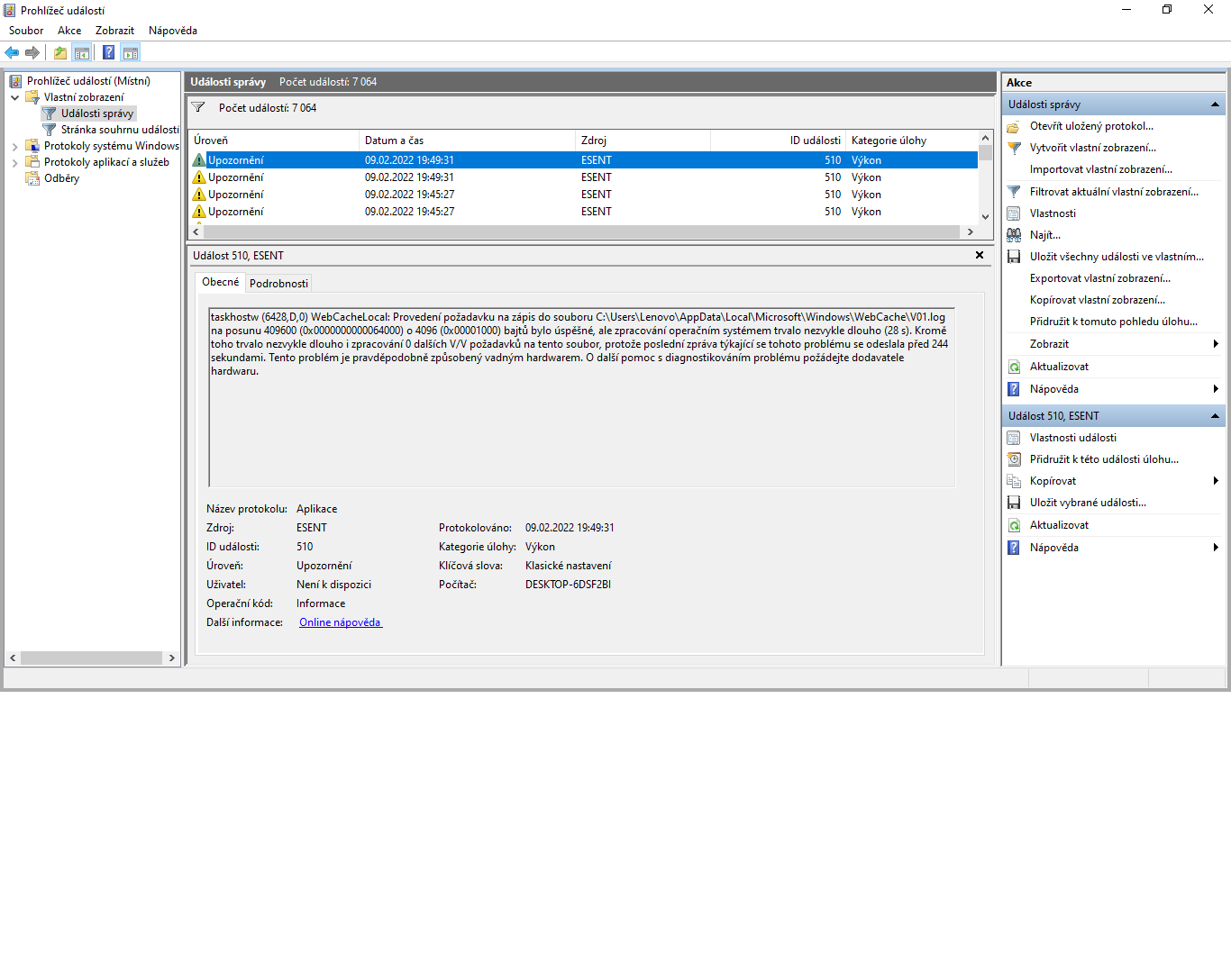 Přidávám nejčastější problémy z Prohlížeče události v poslední době.