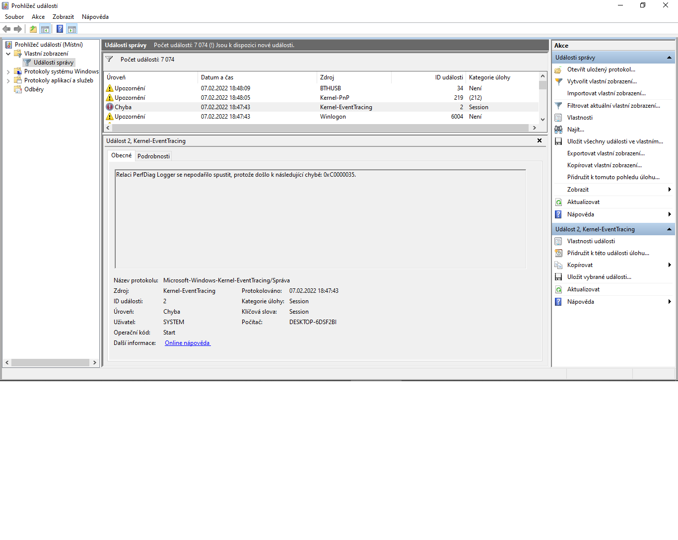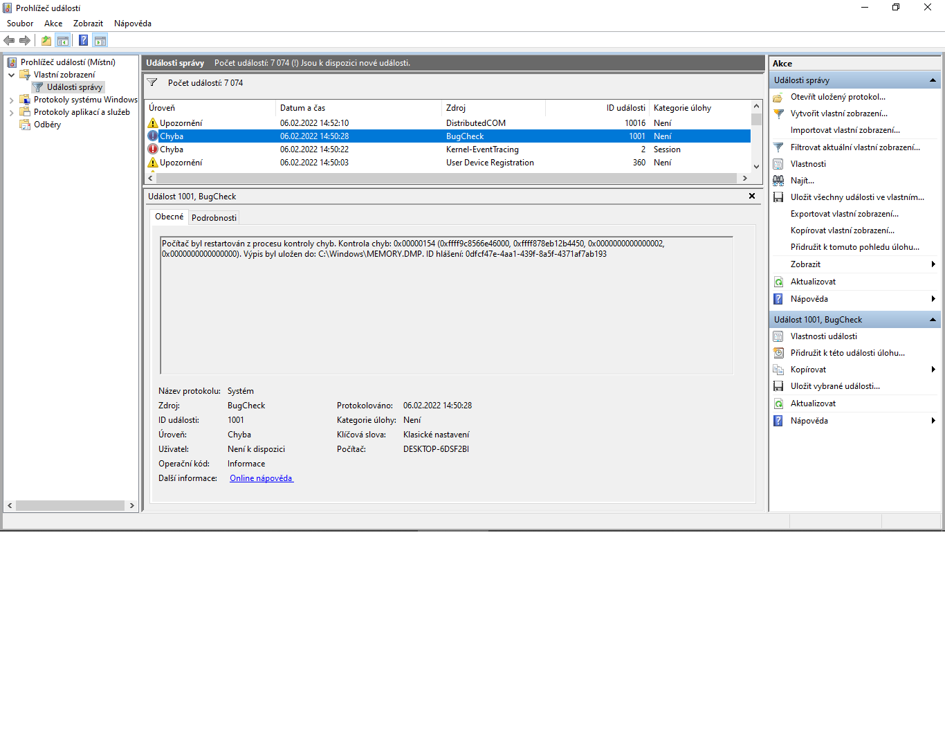 14.2. pád procesu system vyvolaný ovladačem amdkmpfd.sys (grafika). Aktualizuj ovladače a nepoužívej rychlé spuštění.
