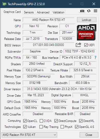 Grafika: AMD Radeon RX 5700 XT Sapphire Technology Limited NAVI 10 XT