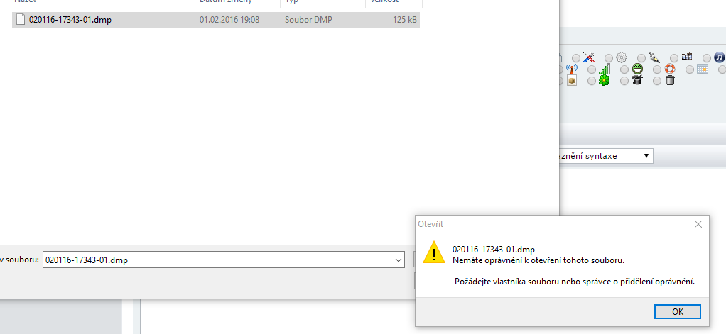 Zkoušel jsi tedy vyzkoušet převzetí oprávnění složky? To zkoušíš nahrát z Minidump složky nebo se ti to povedlo překopírovat na Plochu a stále to nejde?