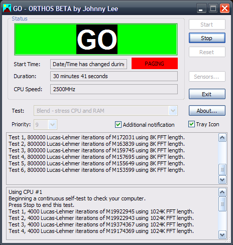 zatížil jsem komp na 30 minut aplikací ORTHOS a komp nespadl. Dávám sem screen ORTHOSu.