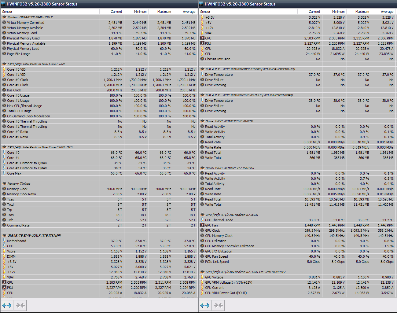 dávám sem slepený screen z HWiNFO32 při zátěži utilitou ORTHOS.
