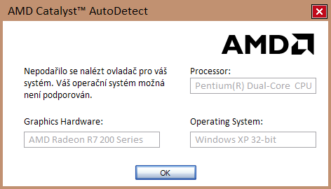 Stáhni a nainstaluj tuto verzi grafického ovladače: http://www2.ati.com/drivers/14-4-xp32-6 ... -pack2.exe