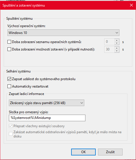 Re: BSOD (*minidump nemohu nalézt/vytvořit*)