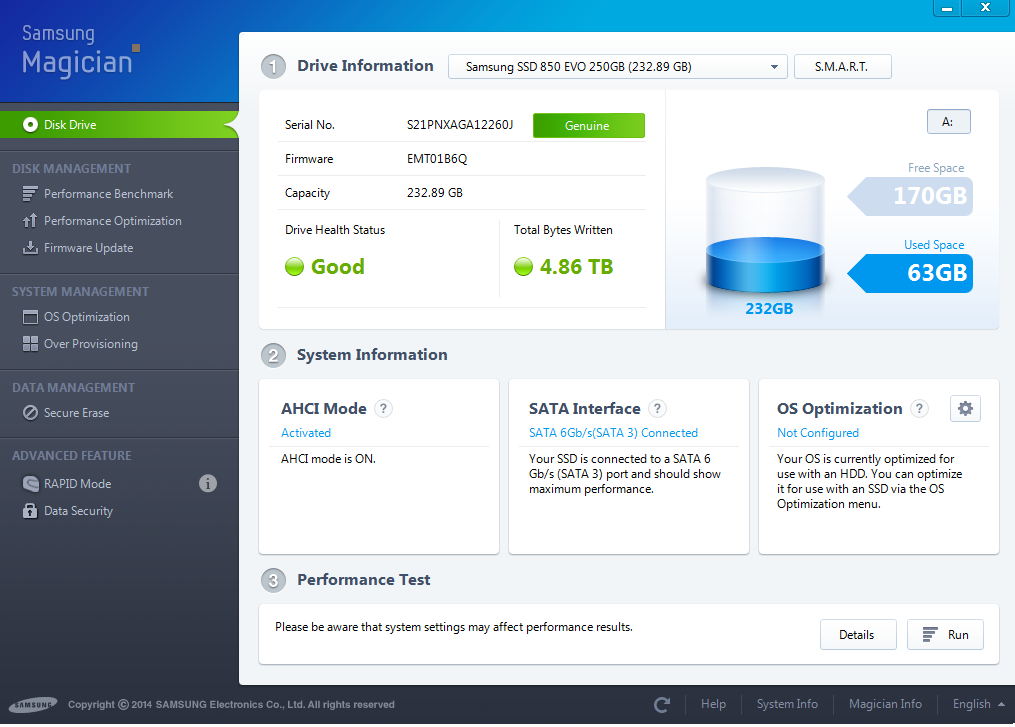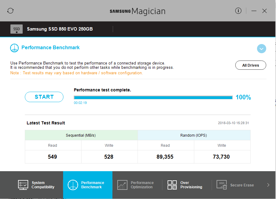 Turion: A samsung magician není aplikace výrobce? V obrázku jsem zatrhnul, kde co magician píše. Chkdsk jsem vždy nechal proběhnout.