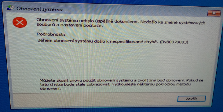 Obnovení systému vyzkoušeno ale vyhodí error