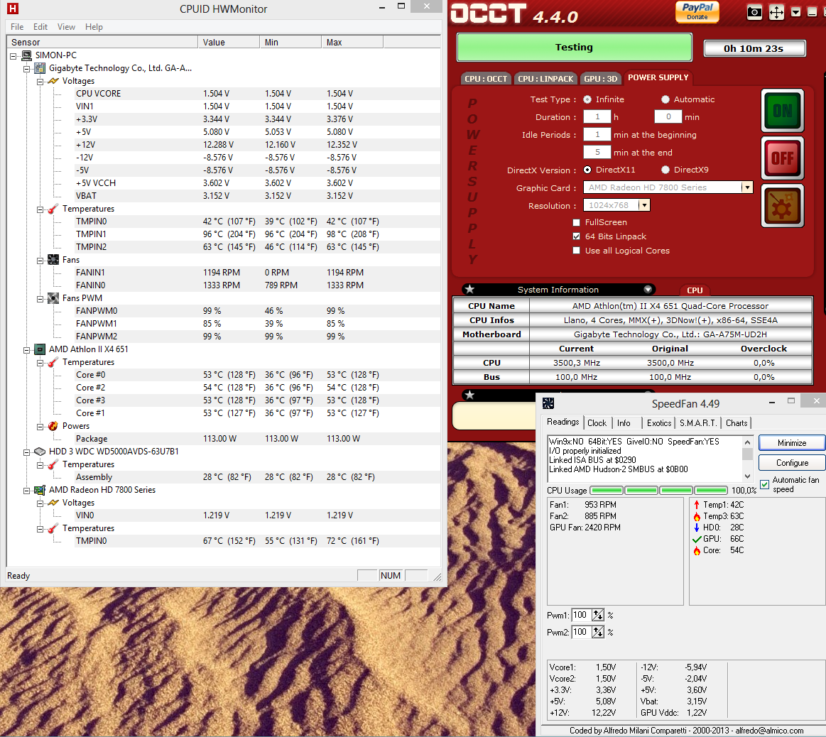 Jo a to nejdůležitější, vrať nejprve takt procesoru na defaultních 3000MHz, na kterých standardně AMD Athlon II X4 651 jede.