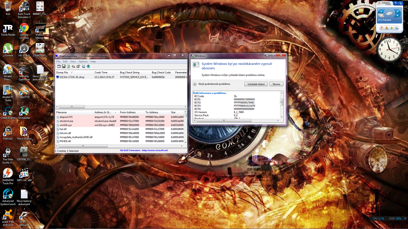Tak celý ten minidump zararuj a upni na http://www.leteckaposta.cz. Sem do vlákna pak vlož odkaz (u minidumpů je to ustálený postup). Teď tu nikdo z BSOD Týmu není, jak se tu někdo objeví, tak se Ti na to kouknou.