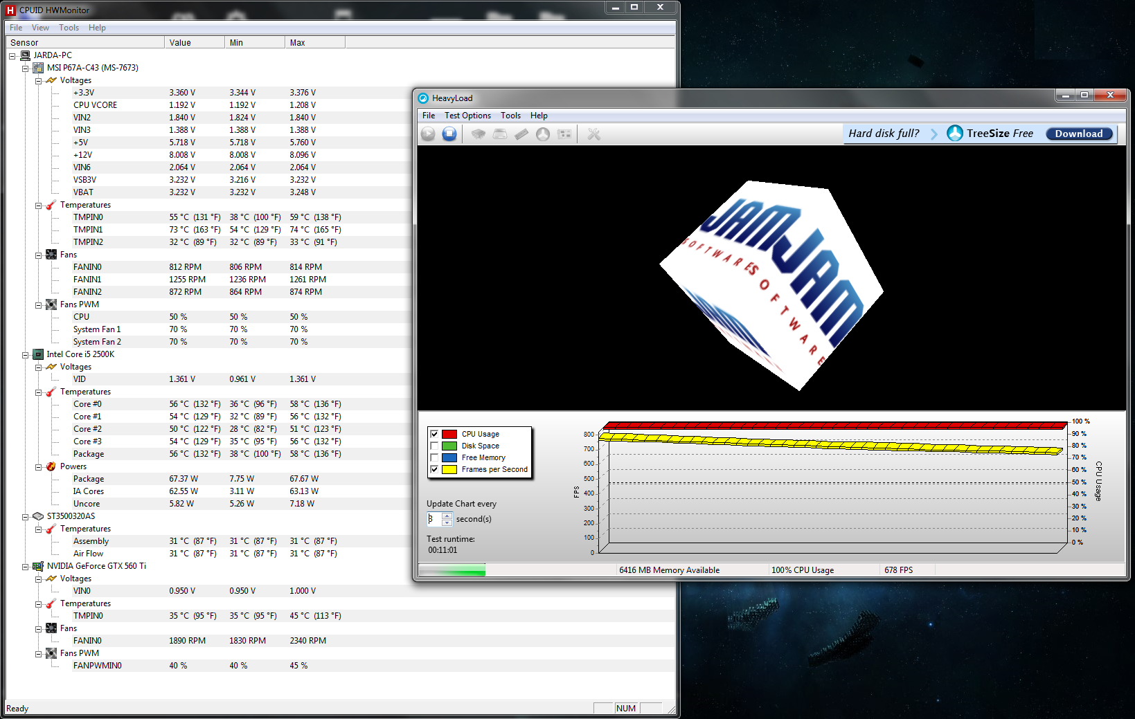 Stáhni, nainstaluj a spusť HWMonitor a HeavyLoad. V HeavyLoad spusť zátěžový test, po 10 min udělej screenshot HWMonitoru a dej ho sem jako přílohu.