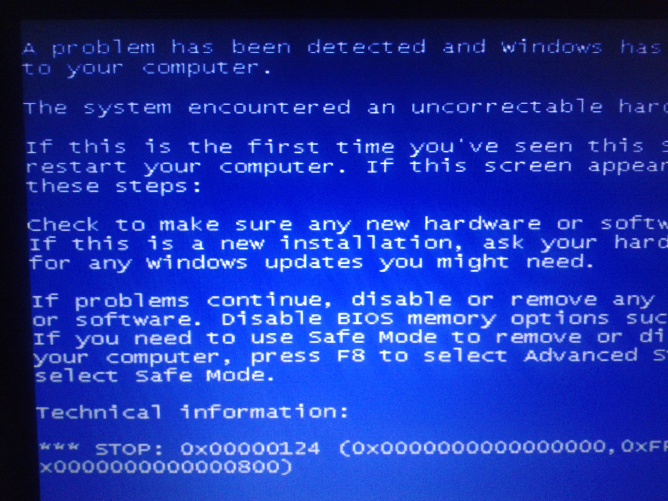 bug_check 0x124 = WHEA_UNCORRECTABLE_ERROR tj. hardwarova zavada. Problem muze byt zpusoben primo vadnou komponentou nebo jejich chybnym chovanim, ktere muze implikovat napriklad vysoka teplota.